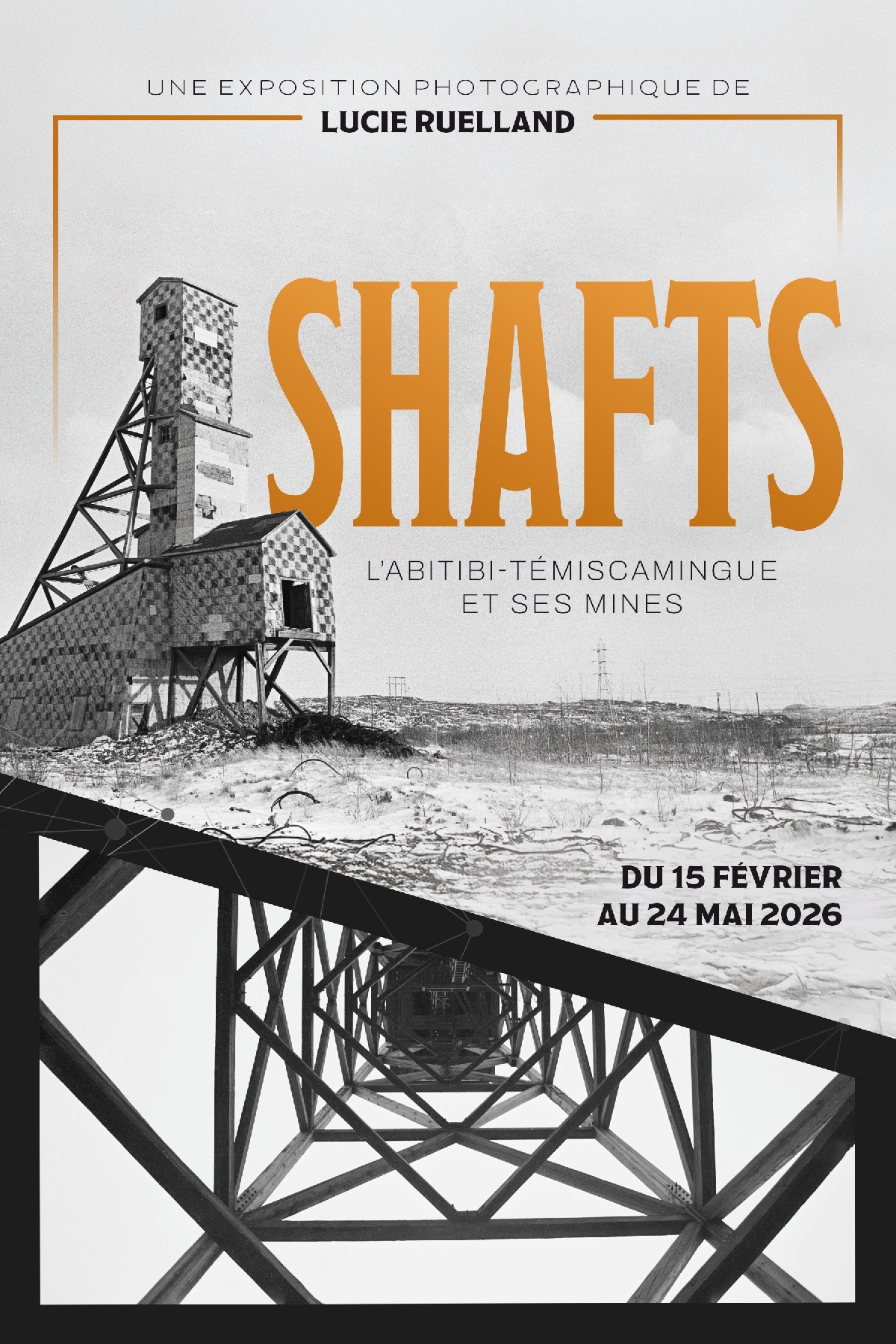 À compter du 15 février prochain, le Musée accueillera l’exposition photographique « SHAFTS. L’Abitibi-Témiscamingue et ses mines » de l’artiste Lucie Ruelland, originaire de La Sarre.
