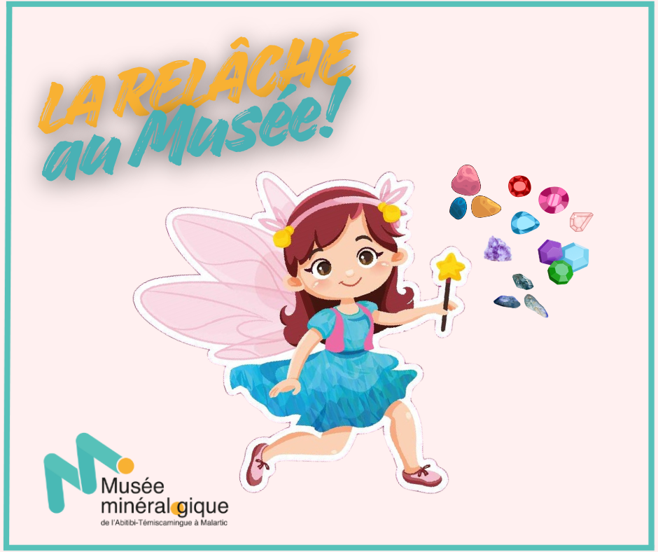 Cette semaine de congé est particulièrement spéciale au Musée : ce sera l’occasion pour nous de recevoir la visite de la Fée Rochette. Vous êtes toutes et tous invités à venir la rencontrer pour profiter d’une expérience interactive unique : vous pourrez toucher, explorer et percer le secret des minéraux magiques! Plaisir garanti pour toute la famille!